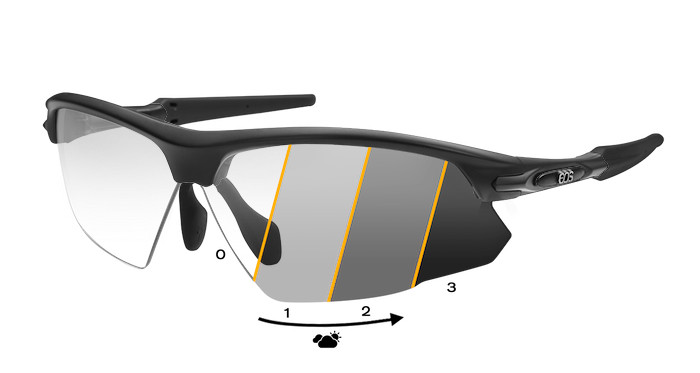 transparent lenses that darken with the sun a gray color, category 0-3. The most versatile lenses that darken depending on the amount of sunlight. Especially suitable for sports such as shooting, paddle, tennis, cycling, MTB and running. Includes anti-reflective treatment on the inner face.